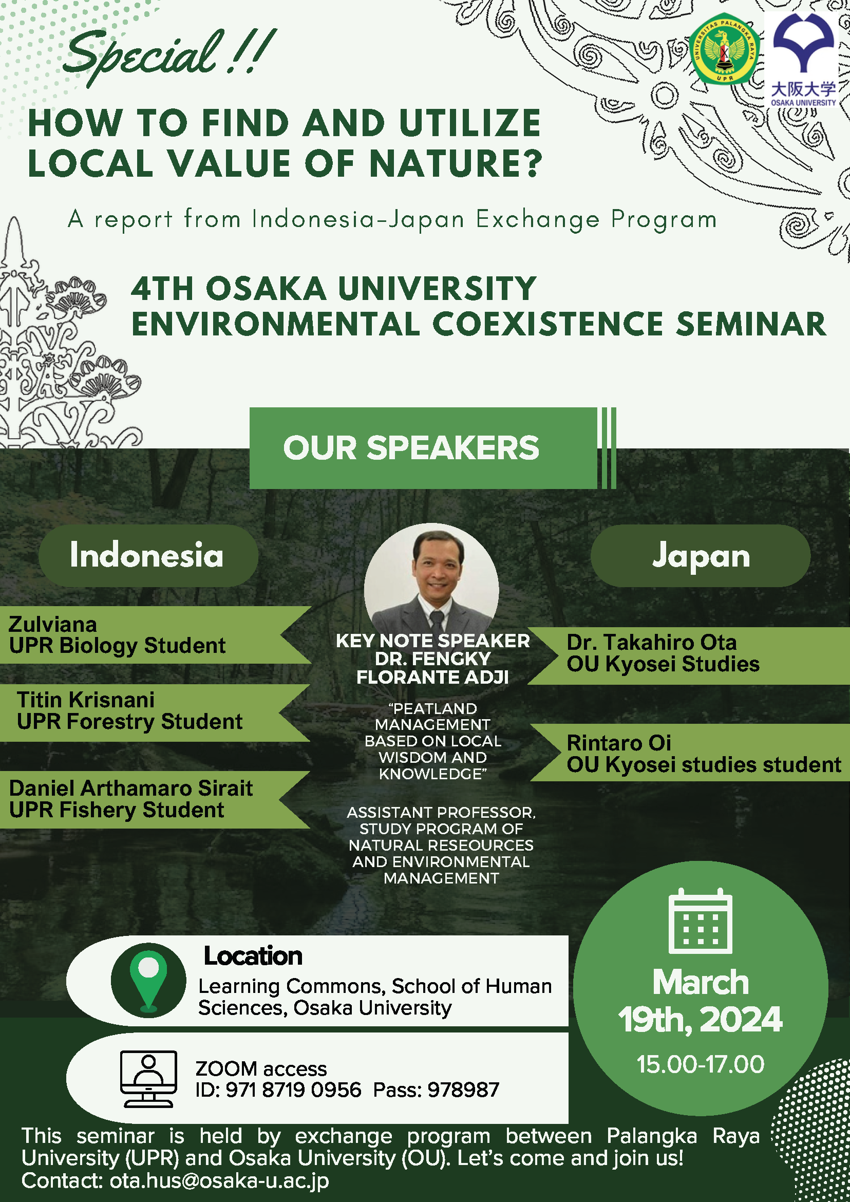 Environmental Coexistence Seminar Series ー 4 Posted bykankyolabMarch 1, 2024September 25, 2025Posted in環境共生セミナー, EXCHANGETags:ecosystem services, 自然, 農学, 共生 Share this: Click to share on X (Opens in new window) X Click to share on Facebook (Opens in new window) Facebook Like Loading... Related