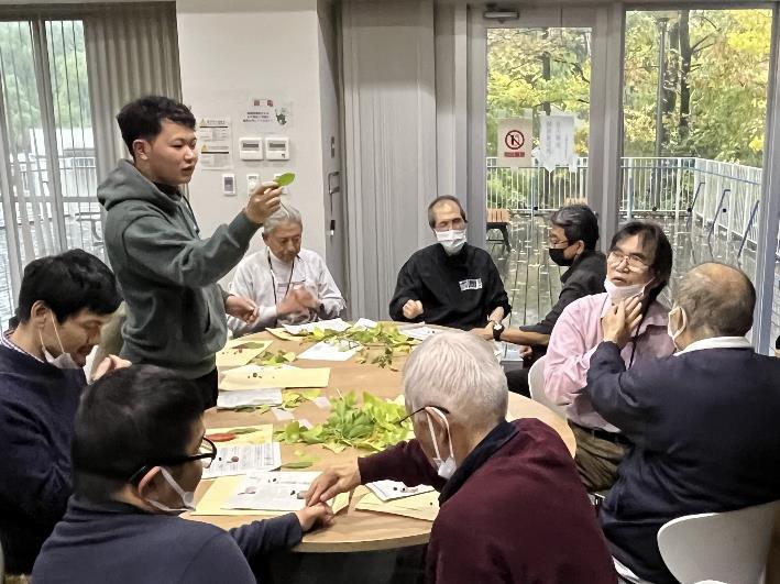 2024年11月26日に「吹田キャンパスの秋を感じよう ~盲ろう者の方々とのネイチュア・フィーリング交流会~」を開催しました。ネイチュア・フィーリングとは、目の不自由な子どもたちの理科教育を一端として誕生した、五感を使って自然を感じるという自然観察会のことです。キャッチフレーズは、いつでも・どこでも・誰とでも - からだの不自由な方のために(for)ではなく、共に(with)というコンセプトを大切にしています。また多様な人々がそれぞれの感じ方を共有することで、より豊かな自然体験が可能となり、自然と人、人と人とのつながりを深める場となることが期待されています。